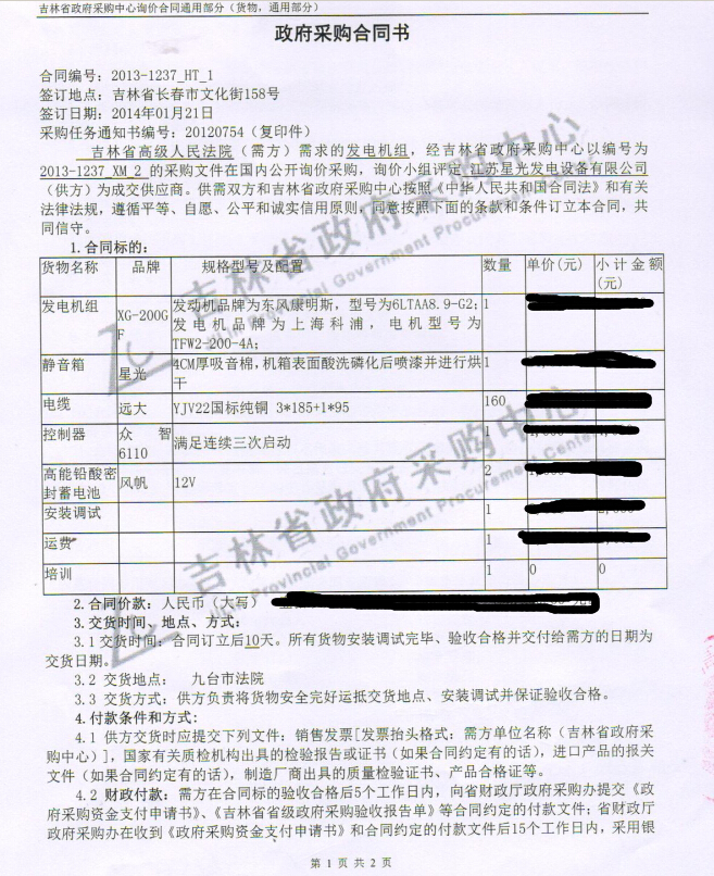 環(huán)球.凱旋公館一期及二期柴油發(fā)動(dòng)機(jī)采購工程