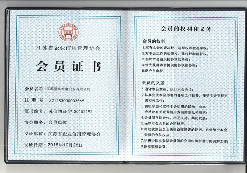 江蘇省企業(yè)信用管理協(xié)會(huì)會(huì)員證書