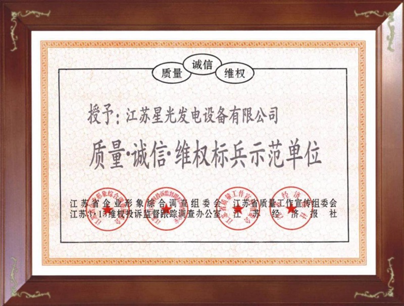 江蘇重質量、講誠信、創(chuàng)品牌三滿意示范單位榮譽
